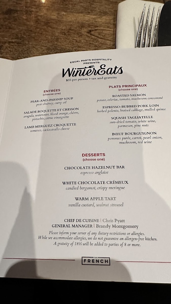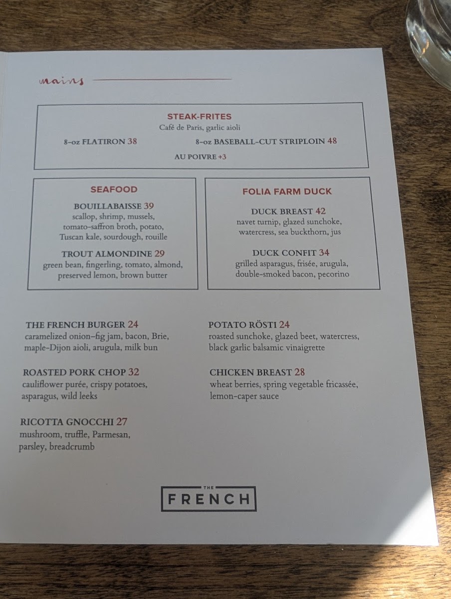 Highlights include the Crispy Potatoes, which are praised for their delicate texture and perfect garlic dip, and the iconic Ricotta Gnocchi, celebrated for its pillowy consistency and rich truffle sauce. Diners rave about the welcoming atmosphere, complemented by beautiful interiors and friendly service. Whether you're enjoying a hearty Steak Frites or a light Roasted Pear and Apple Salad, The French ensures a memorable experience.